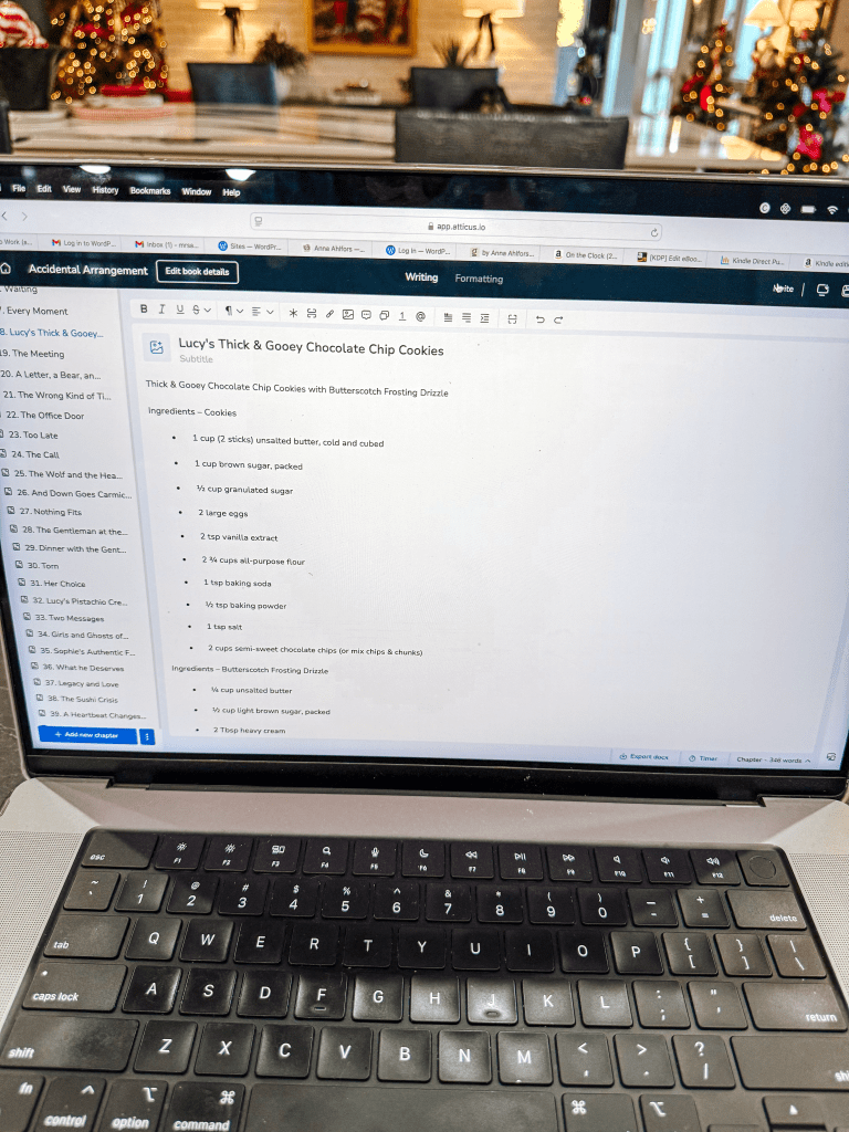 My 16-year-old reads every single chapter I write. Start to finish. He gives me notes, he tells me what works, he tells me when a character’s name sounds “off”, and I treasure every second of it. This season of life — where my husband and my boys want to hear what I wrote that day — it’s special. It’s rare. And I’m not about to miss it by telling them, “Uh…ear muffs for this next part.”